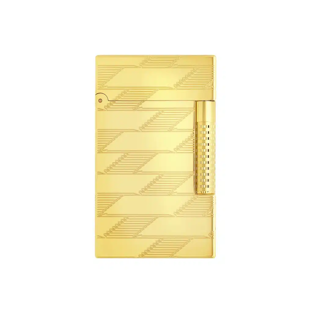 S.T. Dupont’s expertise in metalwork, as well as in the art of lacquering and leather-coated canvas, comes together in the Monogram 1872 collection. Dupont expertise come together in the Monogram 1872 collection. Firmly rooted in their time, the pieces in the collection all feature the new S.T. logo. Dupont logo, straight, purposeful and proud. Le Grand Dupont lighter, guilloché decorated with the Monogram 1872 motif and finished in gold. Featuring a dual ignition system yellow flame or blue flame.