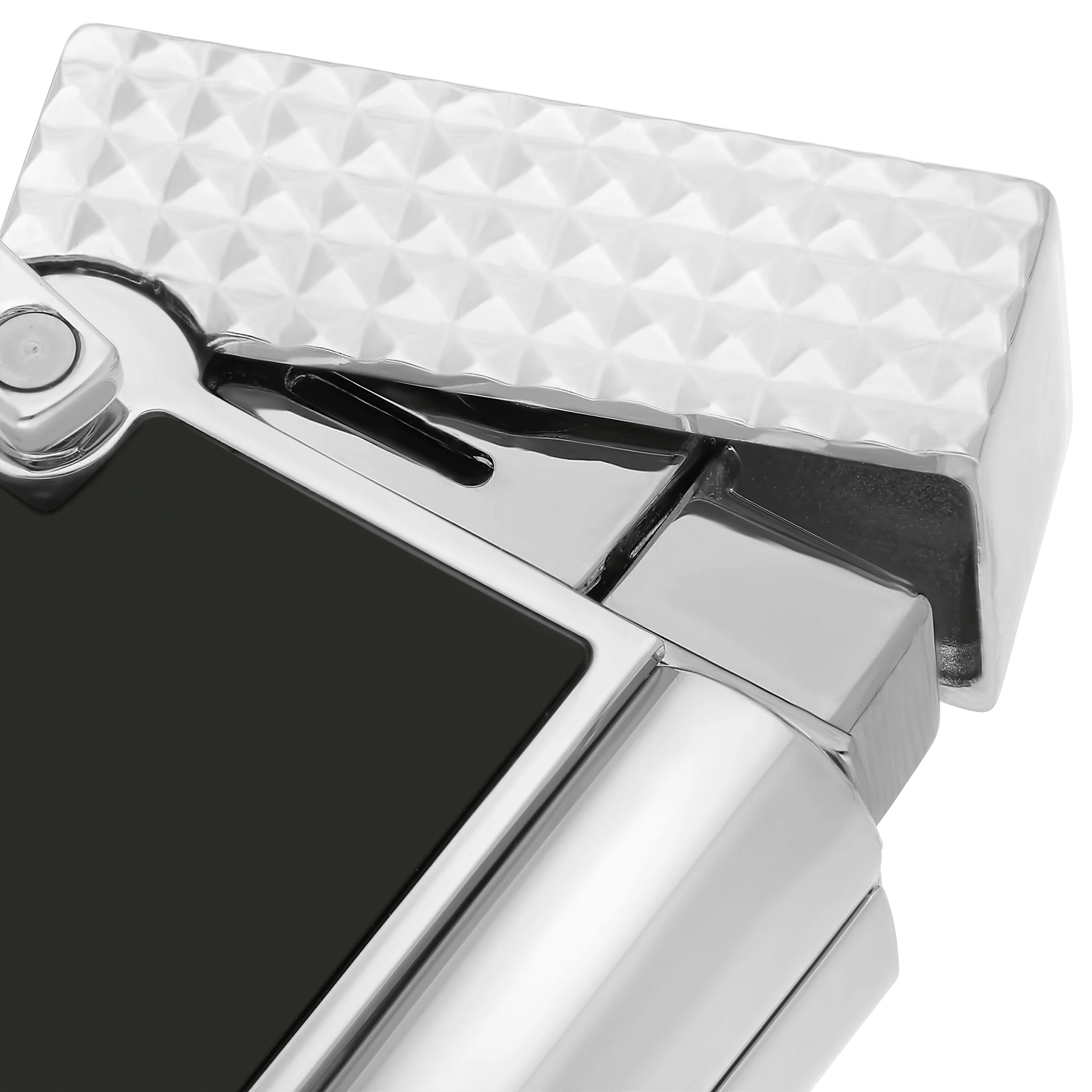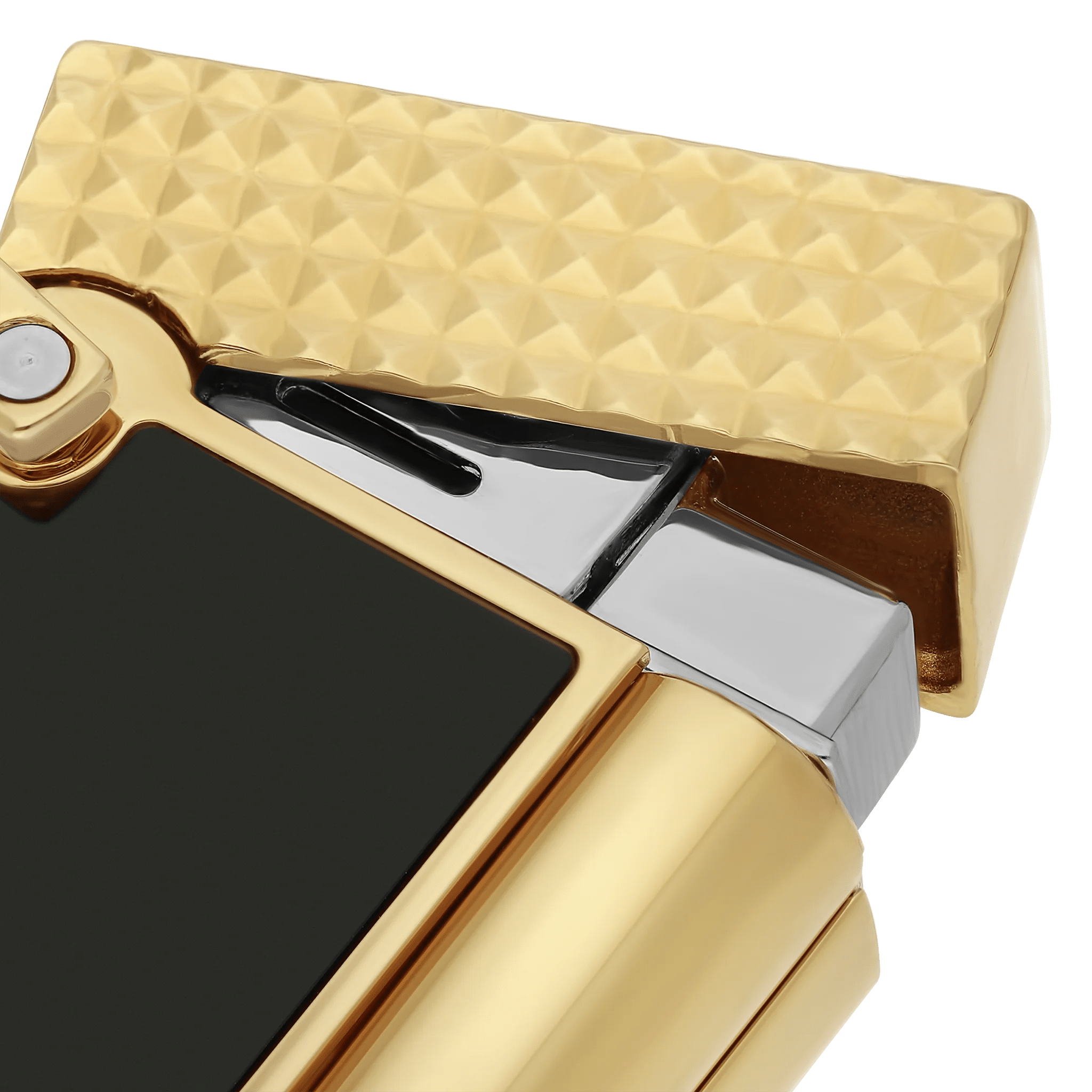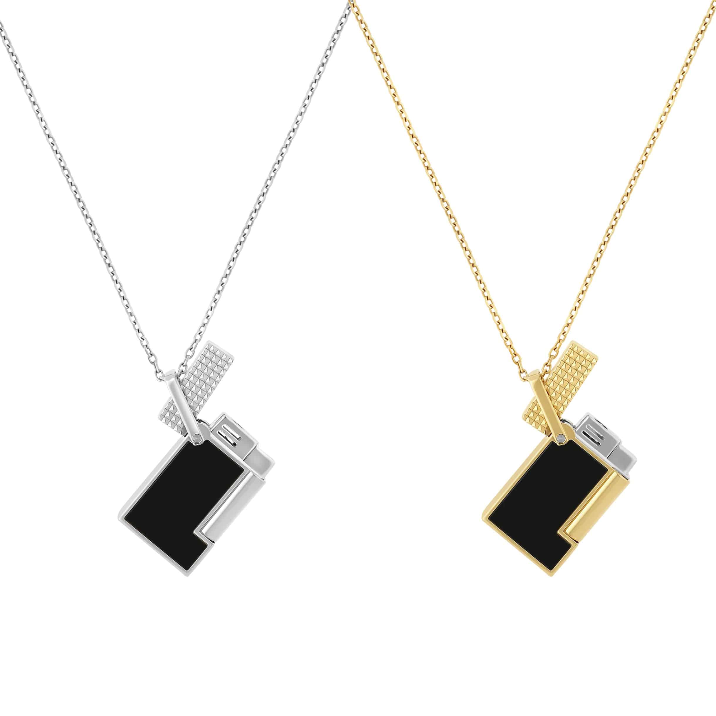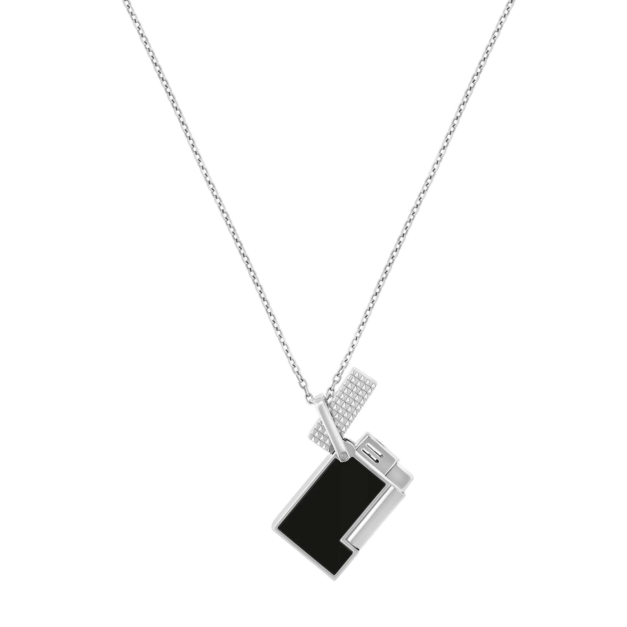 Lighter necklace glossy black lacquer in iconic guilloché with diamond tip and gold finishes. Removable and adjustable chain in three different lengths 80/85/90cm.Â