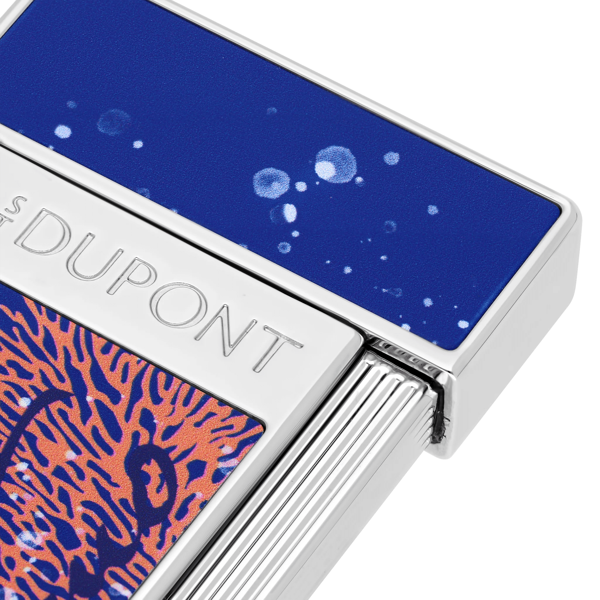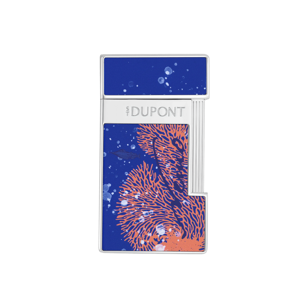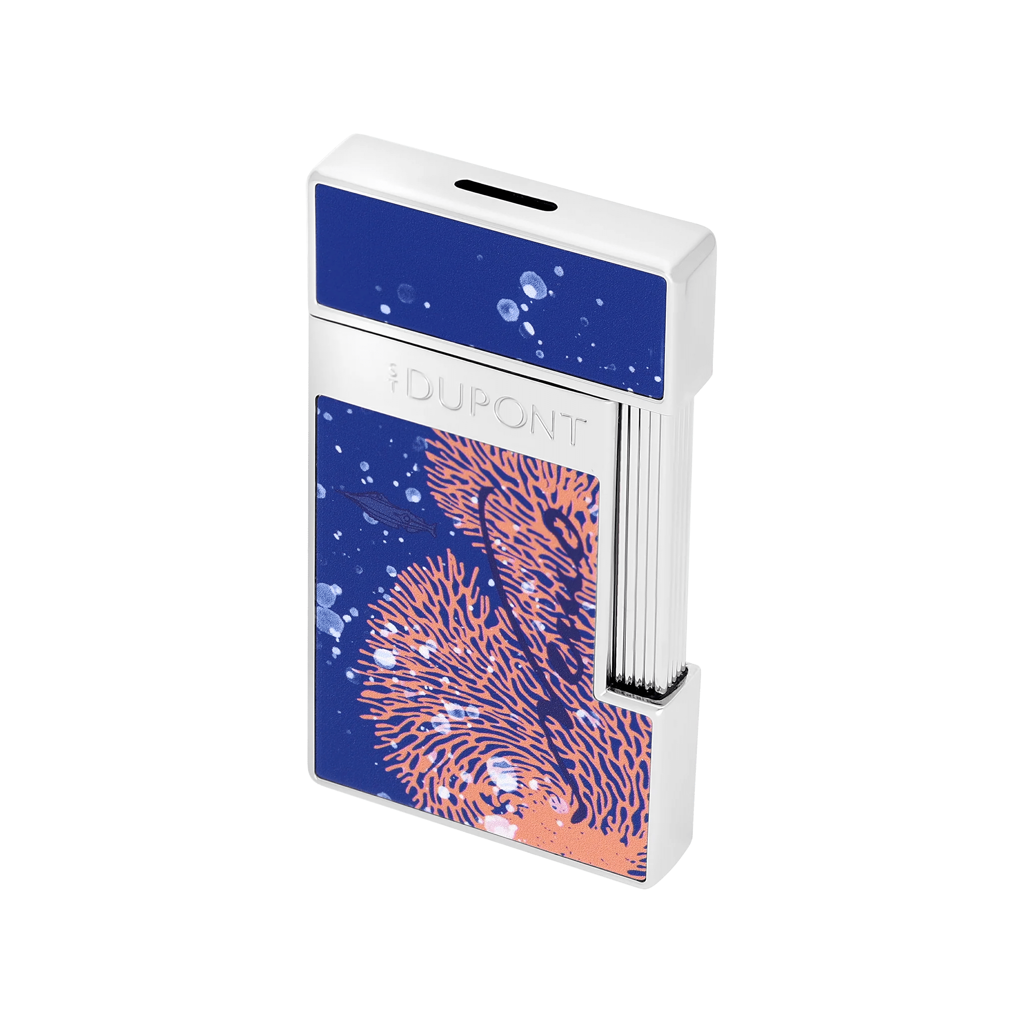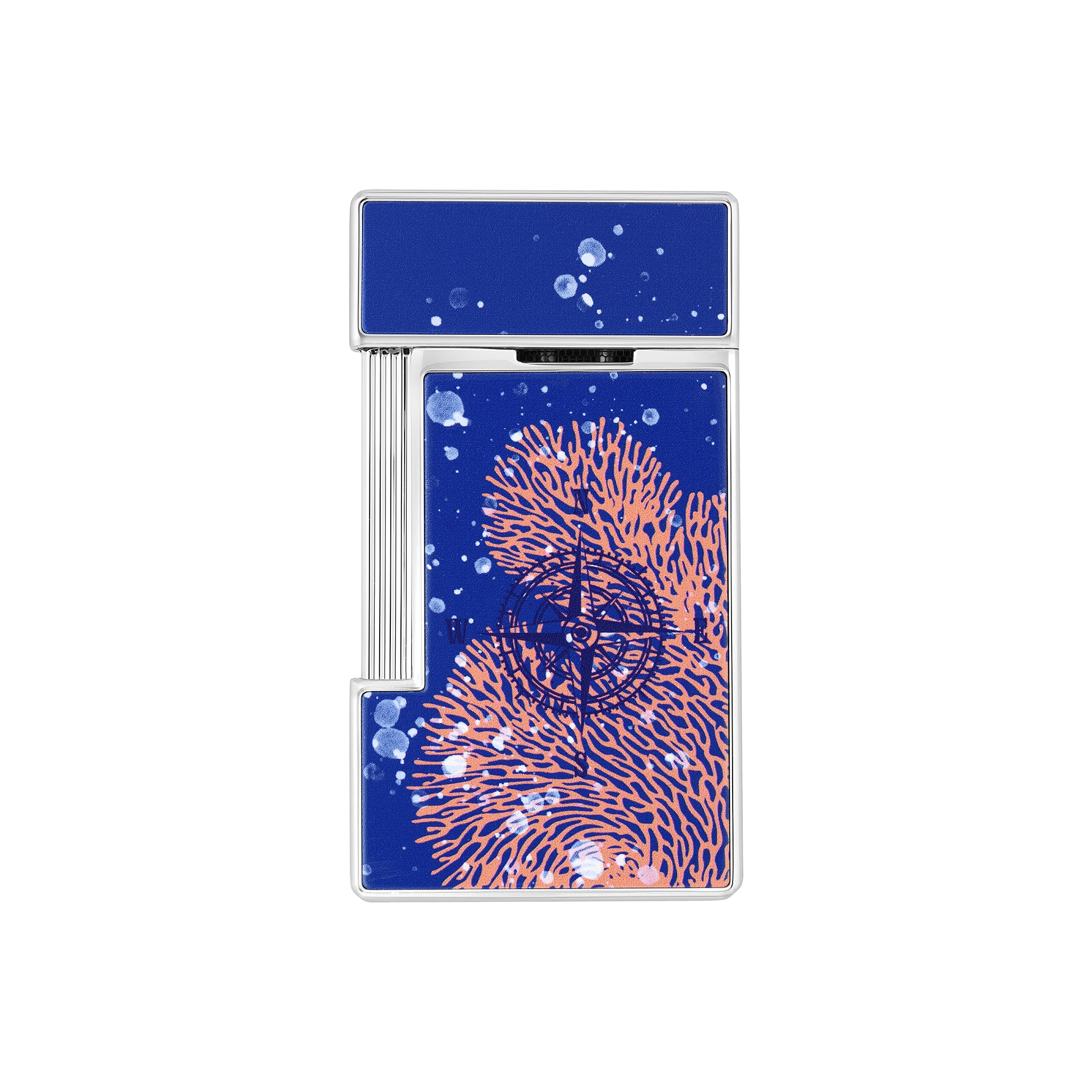 Tribute to the captivating universe of 20,000 leagues under the seas, this limited edition expresses all the know-how of S.T. Dupont. Published in 1870, the novel recounts the journey of three castaways captured by Captain Nemo, this mysterious inventor who travels the seabed aboard the Nautilus, submarine very ahead of the technologies of the time. Portholes, turbines, corals, fins and other tentacles of giant squid inspire this limited edition and its three ranges, all related to different chapters of the book. A story in three stages in which to dive with passion. ‘Vanikoro’ is named after its pattern ‘corals’. In the chapter of the same name, Captain Nemo and his three companions dock on the island of Vanikoro, surrounded by an incredible barrier reef. Twiggy lighter in shiny blue lacquer, with the Vanikoro decoration. Chrome finish. Equipped with a 1 cm blue torch flame, ideal for lighting candles or cigarettes.